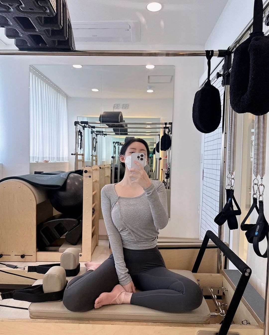 요가인가 필라테스인가를 즐기는 곽민선 아나운서.