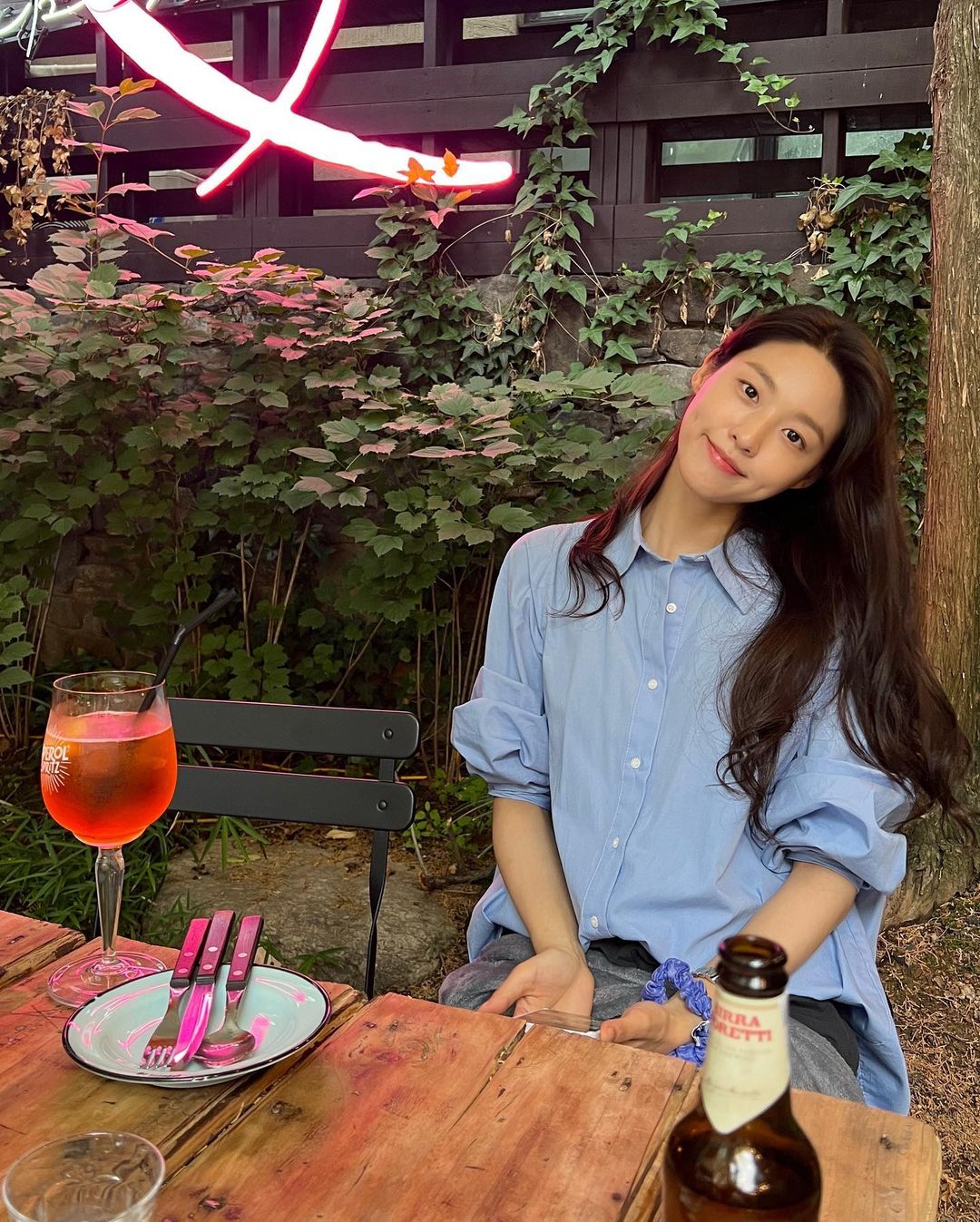 설현은 카페에서 자몽에이드를 마시는 듯한 사진을 공개하였다.