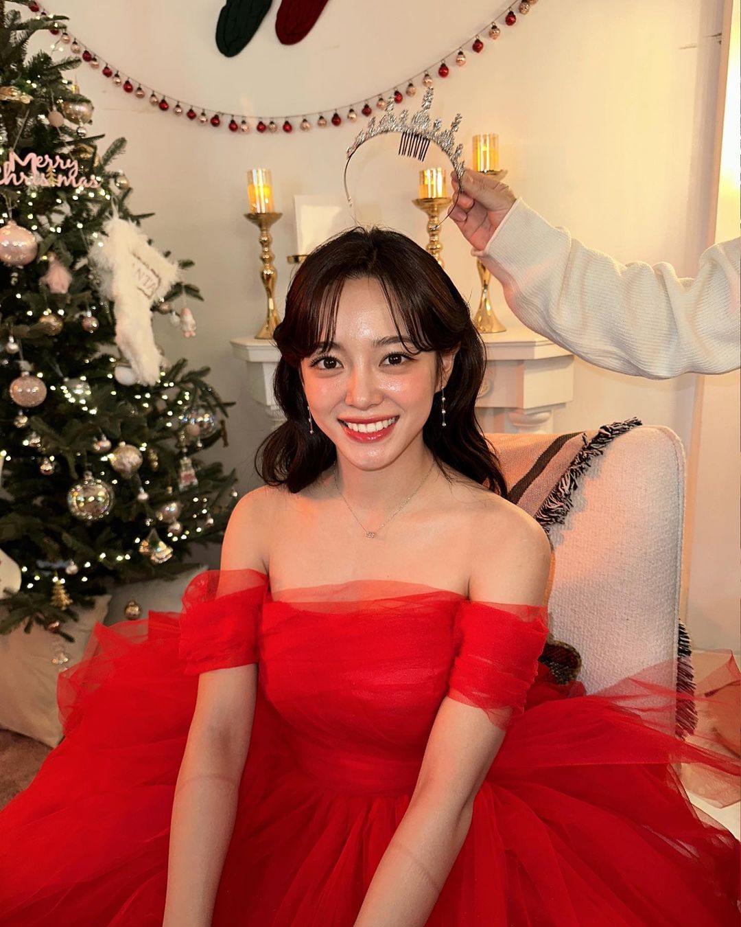 김세정이 선보인 2022년 연말 레드 드레스